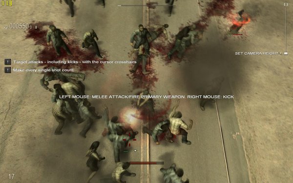 【游戏简介】 可以说是血腥大地的3D版。敌人是僵尸。武器种类丰富,还可以架设自行机枪。主角有近战格斗动作。游戏中会有炸弹、自身克隆等彩蛋奖励。俯视视角的远近可以用鼠标滚轮控制。 【游戏截图】