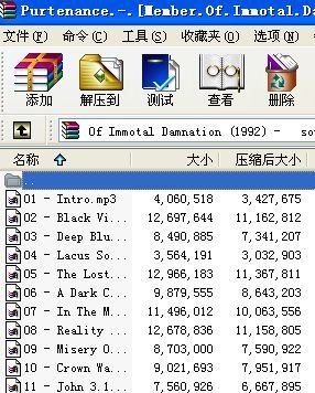 芬兰老牌死亡金属Purtenance,成立于1991年,这是他们的唯一正式专辑,老式死亡的经典作品。乐队很擅长营造阴暗、邪恶的氛围,技术过硬,也兼顾到旋律,音色粗糙,黑味十足,沉重压抑的riffs,凶狠亵渎的低吼,积累与爆发的分寸把握得很到位,曲目当中突然提速紧接着就是高强度猛击与双踩,或者刚开头就直接进入高速猛砍猛敲状态,某些狂暴杂乱的段落甚至还有些grindcore的味道,偶尔还会出现简短悦耳的solo,歌曲中间优美的原声吉他,以及最后优雅的键盘演奏,这些都让人印象深刻。总之,好听的老货~