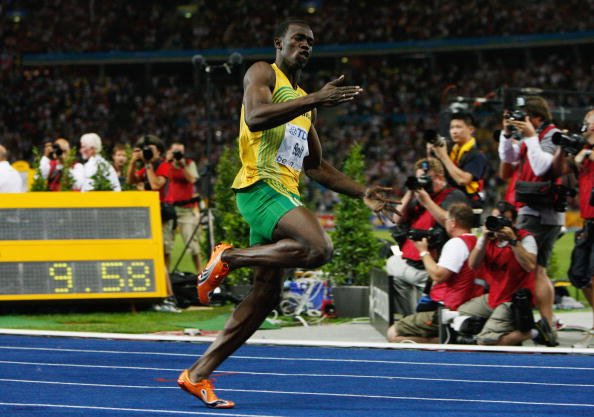 由牙买加的博尔特领衔,各国飞人在柏林世锦赛跑道上演绎了一场有史以来最为精彩的男子100米大战。博尔特以9秒58令人匪夷所思地将世界纪录带进了9秒60大关;上届冠军、美国选手盖伊获银牌的9秒71的成绩,也是男子100米历史第三佳绩。从18日到20日,博尔特的200米征程又将成为柏林赛场的焦点   “外星人”条件无与伦比   自1968年实行电动计时起,男子100米世界纪录一般都是以0.01秒、0.02秒的速度提升。而从去年博尔特“降临人间”以来,这种原有速度突然大幅度提速。他先是小试锋芒,去年5月31日在纽约跑出9秒72,将世界纪录提高了0.02秒;接着便在北京奥运会上大放异彩,以9秒69夺得100米冠军,将世界纪录一下提高了0.03秒。   这次在柏林,更是让人大吃一惊,100米跑完,博尔特仅用了9秒58,世界纪录又一下被缩短了0.11秒。系改用电动计时以来,男子100米世界纪录提高幅度最大的一次。   不到一年三个月,便三度改写100米原有纪录,世界纪录在博尔特面前不仅变成了易碎品,而且提高的幅度越来越大。   博尔特创造壮举的秘密究竟何在?北京奥运会后,不少专家对此进入了深入的探讨,结果不得不承认,是无与伦比的身体条件给了他超出常人的动力,正是缘于此,人们神话般地为之冠以“外星人”的雅号。   按照以往男子短跑选材的理念,运动员身材多在1米80到1米85,因为短跑取决于步长、步频两大因素,个子太高,步长有利,步频却不利,所以速度难以占到便宜。而1米80出头的选手,常常能在步长与步频的结合上优于个子更高者。   博尔特却是一个另类。他身高为1米96,是世界大赛100米冠军中的“第一巨人”。身高腿长,使得他在100米比赛中的步幅高出别人许多,但最为神奇的是,其步频也毫不逊色。   有人专门做过测量,北京奥运会100米决赛,博尔特共跑了41.1步,平均每步达到2.433米,是100米比赛历史上的最大步幅;而其平均步频也有4.241步/秒。在比赛的50到80米时,博尔特的最高速度可达12.195米/秒,大大超过了历史记载的12.05米/秒的人类最快速度纪录。