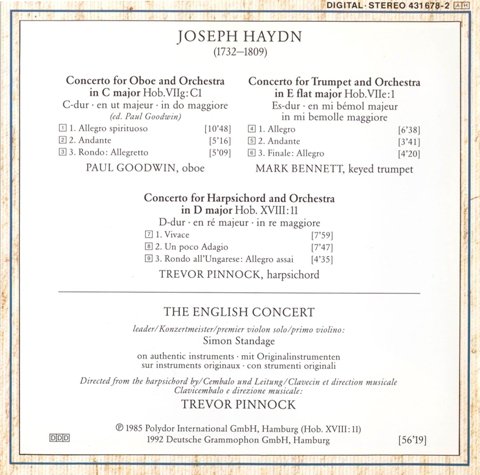专辑英文名: Haydn - Concertos for Oboe, Trumpet, Harpsichord