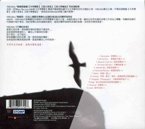 在YIRUMA的《初恋》里,我开始会怀念喜欢上你的感觉…   在YIRUMA的《绿州》里,我知道有缺陷的爱情,其实也可以很美丽…   在YIRUMA的《情书》里,我瞭解因为无法得到你的爱,所以成就了彼此永恒的回忆…   其实在每一个喜欢你、想念你、怀疑你、憎恨你的时刻,都是YIRUMA的音乐陪著我慢慢的我知道他的音乐在我的生活中,已经变得像周围的空气那么的自然而然。今年的冬天,我又将沉溺在YIRUMA的浪漫氛围里。今年冬天最温暖的陪伴---YIRUMA《不变的故事》钢琴演奏专辑。   YIRUMA《不变的故事》,当爱已成往事,那些拥有过的记忆并不会消失… 这是曾经相爱过的人,藏在心中最美的回忆。我不想忘…也不能忘… 想用专属於我的音乐,写一部我和她的电影。也希望我的乐迷透过音乐,重温深藏在心中的秘密。   YIRUMA---韩国偶像剧【冬季恋歌】【夏日香气】【春天华尔滋】等浪漫配乐。自从一首When The Love Falls被【冬季恋歌】导演尹锡湖选为剧中女主角---郑有珍的主题曲之后,YIRUMA声名大噪。尹导浪漫韩剧【冬季恋歌】【夏日香气】【春天华尔滋】,皆指定由YIRUMA来操刀剧中配乐。   YIRUMA---韩国第一位站上国际音乐舞台(法国坎城)演出的钢琴演奏家。2002年,YIRUMA代表韩国在坎城唱片世界博览会中进行公演,卓越的演出才华,让来自世界各国的音乐工作者为之惊豔,相继与他签订代理发行唱片事宜。他的音乐以具有温暖的感性、温柔的钢琴演奏和浪漫的氛围,受到眾多乐迷喜爱。