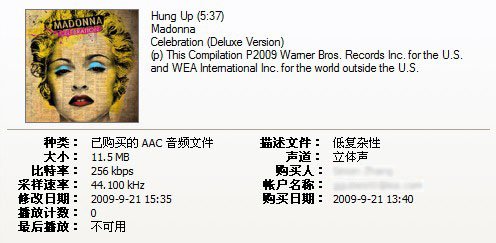iTunes英国区2009.09.21发行;正版iTunes Plus AAC (256Kbps) 。
