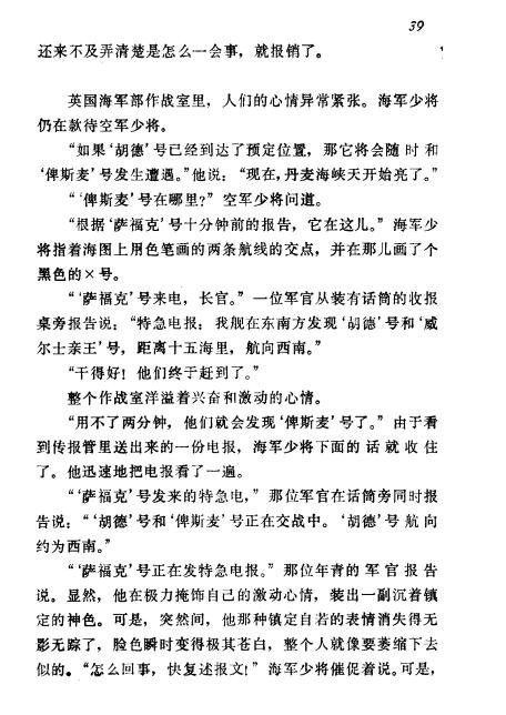 ◎译  者  汪子强 一本很不错的记实小说,曾被拍成著名的同名电影。该书以英国人的视角讲述了追击俾斯麦号的整个过程,其所讲述内容可能与德方观点有分歧,请甄别对待。版本为83版海军船舶工程学院内部阅览版。