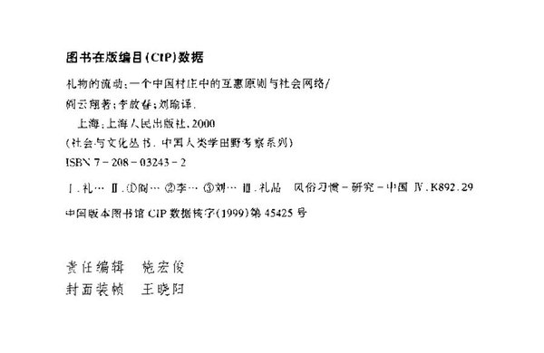 中文名: 礼物的流动:一个中国村庄中的互惠原则与社会网络