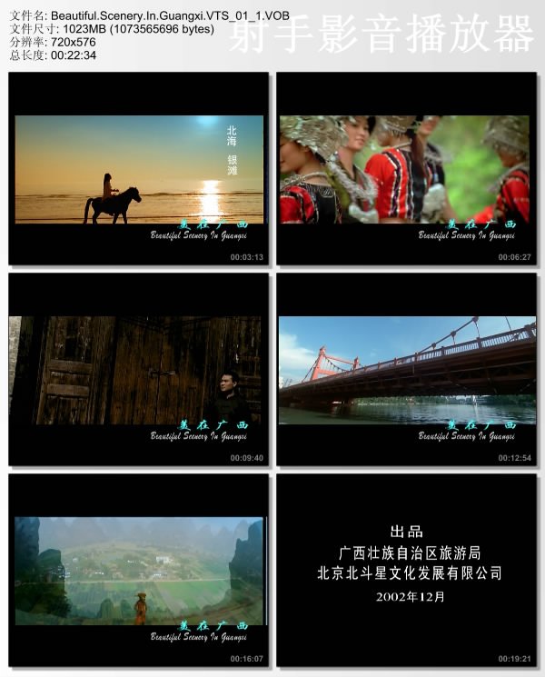 如果,您打开了《美在广西》,您就开始了一次美不胜收的艺术之旅。如果,您开始了广西之旅,您就踏上了一条不思归的诗境旅程。由广西壮族自治区旅游局倾力打造的中国第一部旅游形象片《美在广西》日前获中国电视文艺最高奖“星光奖”一等奖。《美在广西》邀请了国内一流水平的编导进行创作,采用先进的技术设备,历时一年多时间精心摄制而成。片中展现了桂林山水、滨海风光、少数民族风情等广西风格多样、种类齐全的旅游整体形象和特色。全片构思新颖、表现形式和拍摄角度富有新意,意境优美,画面清新。《美在广西》在音乐上采用著名的“刘三姐”民歌作为素材,而又有所突破创新,音乐旋律优美,与画面水乳交融,具有极强的感染力和震撼力。《美在广西》一经播出,立即好评如潮。我国著名画家范曾、韩美林,著名作家莫言等国内几十名知名人士先后为《美在广西》题词。中央电视台新闻评论部主任梁建增道:“《美在广西》创意精巧,意象精妙,画面精美,是我看到的最好的旅游宣传片之一,让我想到经典的《丹麦交响曲》。”著名词作家乔羽题道:“发现美,领略美,而后表现美,创造美,于是产生了艺术。”著名文化学者余秋雨的评论是:“把一个边远的地域交付给国际眼光,把一种深藏的奇景转化为万里诱惑,至美无言,绝色无界,美在广西,岂可辩哉!” 来吧,朋友!来到广西!这里有孩子天真的笑脸和纯洁的空气,这里有久违的人类与生俱来的最自然的爱!