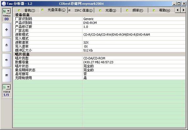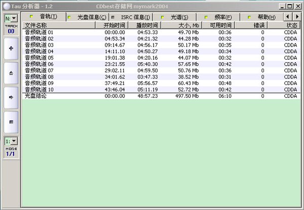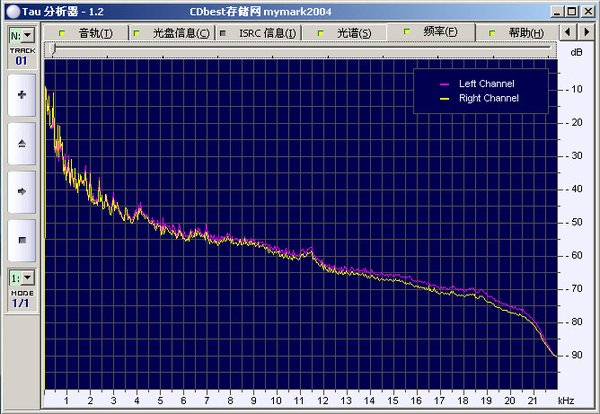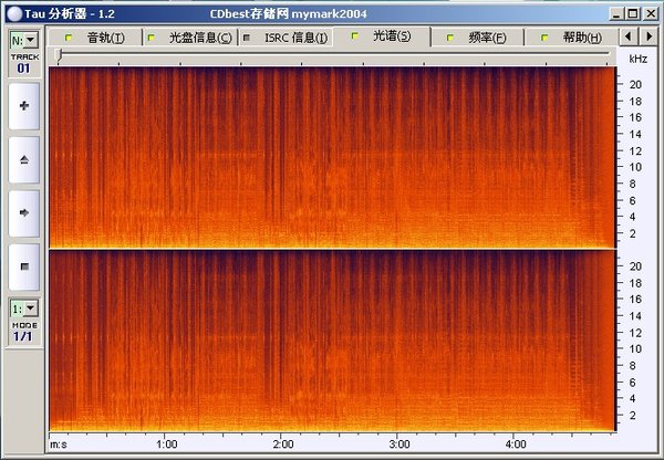 图中会发现文件大小与FLAC的文件大小不一致,其中的原因是用Tau Analyzer进行频谱分析必须载入虚拟光盘,而虚拟光驱不认FLAC,只认WAV,所以要转成WAV再进行分析,故显示文件大小比发布的大。