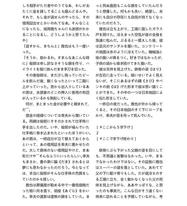 《幻夜》说的是一个欲望和背叛的故事。背景设置在阪神淡路大地震时的大阪和东京两地。或许在作者眼里,这次大地震的影响力简直可以与圣经里的末日洪水相比。只是,圣经里的洪水逝去后留下的依然是希望和宽恕,而阪神地震结束后的却是人间的修罗场和在这个修罗场上上演的一幕令人不知该叹息还是该流泪的悲剧。一个淳朴但手艺非凡的技工水原雅也为了获得父亲死后的生命保险赔偿,也为了结束叔父俊也的纠缠,在大地震那天将困在沙砾中的叔父杀死。可这一幕被一个后来自称为“新海美冬”的女子目击,并从此成为女子利用他的工具。或许是由于本性的善良和愿望的良好,雅也自始至终都深深地眷恋着美冬,哪怕到发现对方根本就是在欺骗自己,利用自己的时候还是不肯放手,直至最后自杀,并一同杀掉了那个就快抓住美冬狐狸尾巴的警探加藤。