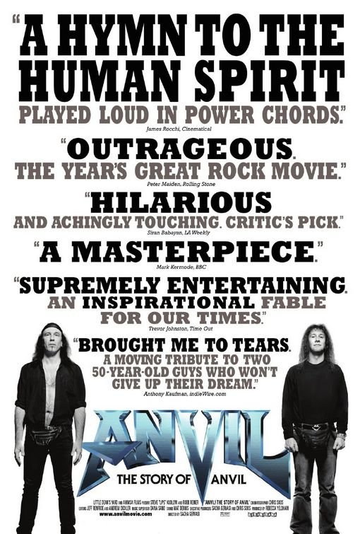 洛杉磯电影节与雪梨电影节观眾票选奖,讲述加拿大知名重金属摇滚乐团Anvil,从十四岁成军到红遍全球,影响了许多摇滚名人的故事。