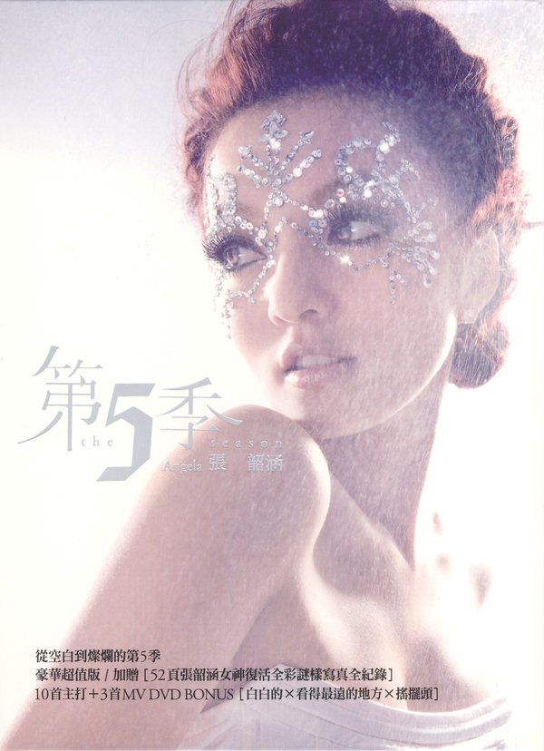 睽违一年8个月的全新音乐 休息不是空白 也无人可以取代 全新个人大碟「第5季」 10首主打 给你新听觉 唱片公司还特别企划让歌迷在发片日当天就一次能拥用前三波主打的MV BONUS DVD,除了10首好听的音乐,也让歌迷抢先听到看到好久不见又值得收藏,睽违了将近2年的 张韶涵影音专辑。 厂商最爱的实力派偶像张韶涵,2009年一发片就得到欣赏她已经3年的知名日系牛仔裤厂商的BOBSON的赞助,除了提供09年最新秋冬限定款服饰让张韶涵在『白白的』的MV中曝光,以 用来表现歌曲中的气氛,还一口答应要在全省的专门店与百货专柜上,全天播放『白白的』 MV,让逛街的消费者也都能看得见。而好康不只如此,歌迷购买新专辑还能独享日系知名牛仔裤品牌BOBSON 秋冬商品75折之折价券,而去柜上消费的同时,又可以看到自己喜欢的歌手MV,真 是乐翻了。大声一起喊,张韶涵回来了!女神复活了! 张韶涵成功挑战自己的造型极限,将带领大家走入一个白色谜样的神祕季节氛围,除了挑战百变 造型,歌迷朋友在9/11-9/24预购,在9/25发片就能独享52页全彩『Ang女神复活谜样写真集』,而这一次唱片公司还特别企划让歌迷在发片日当天就 一次能拥用前三波主打的MV BONUS DVD,除了10首好听的音乐,也让歌迷抢先听到看到好久不见又值得收藏,睽违了将近2年的张韶涵影音专辑。 第5季 一个白色的谜 一场从空白到灿烂的梦境 引用
