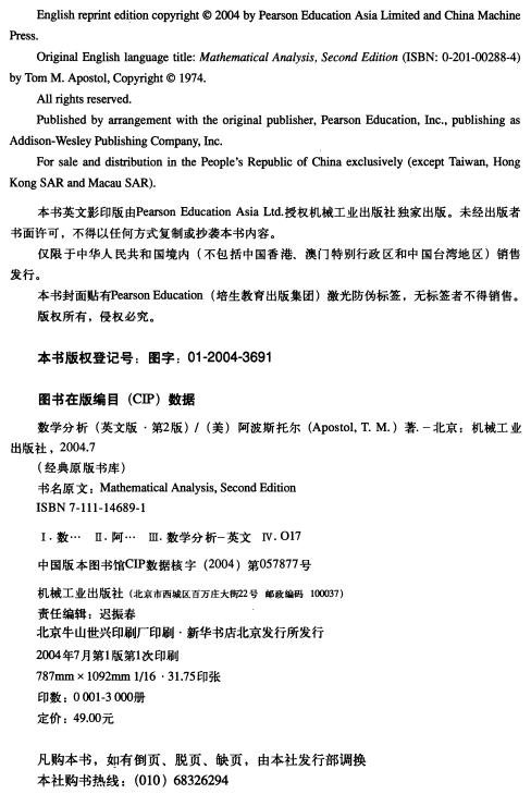 数学分析 微积分 Mathematical Analysis Tom M. Apostol 英文第2版[DJVU]