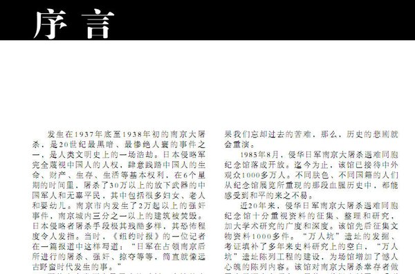 本书是南京大屠杀史实研究部新作全书共分七部分各部分相互之间衔接紧密再现南京大屠杀惨烈图景展示国际友对南京民道主义救助表达爱好和平们对大屠杀思考 本书使用大量的历史照片,揭露日本侵略军在1937年底至1938年初制造的20世纪最黑暗、最惨绝人寰的事件—南京大屠杀。 本画册以大量的史实照片、报道、有关人员的日记、书信等,真实地记录了这一段噩梦般的历史。 网页版:http://www.showchina.org/rwysjxl/njdtstl/200710/t129621.htm 本资料来自互联网,限个人测试学习之用,不得用于商业用途,请在下载后24小时内删除。