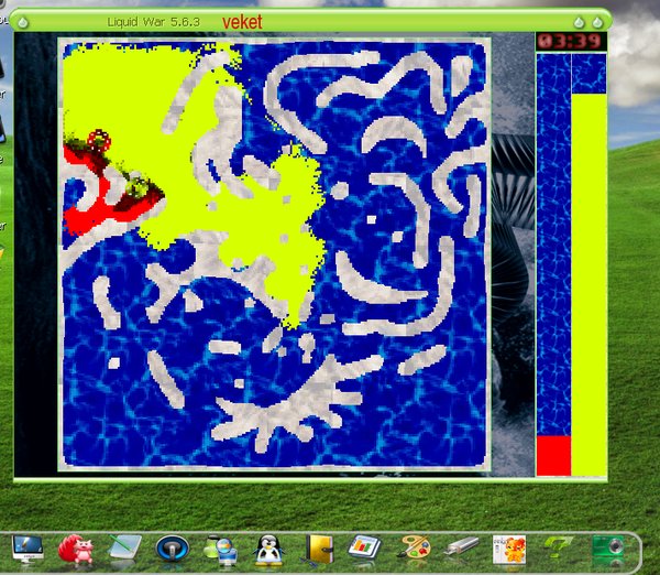 这个可以说是即时战略最基本的模型了:用游标带领军队与敌方厮杀。蕴藏在简单的规则下的却是复杂的战术。要获得胜利必须仔细分析地形,观察敌人的动向,并制定缜密的计划。游戏的参数可以随意调整,这意味着游戏的长短可以定制。你可以在40秒内完成你的包围计划,也可以花一个小时打游击战。不过真正的挑战在于与人对战,这个游戏甚至允许六个人在同一台终端下展开混战。游戏本身好像是由寻路AI得到的灵感(从某种意义上来说这才是RTS的基本)。曾于 2002 年获得过 "Most Original Linux Game" 奖项。