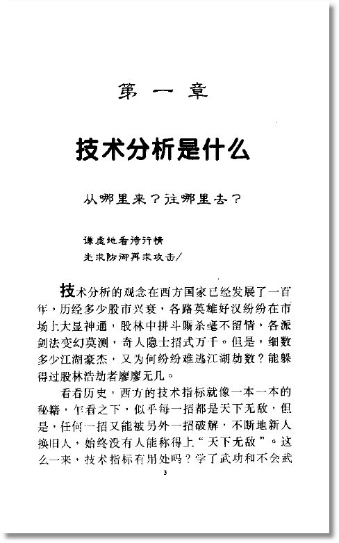 ◎译  者 N/A   中国股票市场的发展,堂堂迈入第六个年头,回首过去,尽管一路走来相当辛苦,但是也扎下了厚实的基础,为中国股市晋身世界金融市场,跨出了傲人的一大步。短短五年,能够拥有如此规模的市场,令国际投资人士无不刮目相看,同时也真正感受到了中国市场强大的潜力。    然而,这些成就只是一个起步,未来必须不断地改革,早日达到国际水平,这是所有中国股民的希望,也是无法抵挡的潮流。这几年的股票市场,被认为是由政策面主导走向,股民投身市场中,大部分随着政策的风向转变而转变,因此,股民的情绪忽而东、忽而西,心理上,时常存在着很大的压力。对于行情不理性的大起大落,股民心里面也只能感叹无奈。投资人的思路,如果只能随着政策的起伏而起伏,那么,这不仅不是健全股票市场应有的现象,而且也无法达到国际水平的要求。   尽管在市场中人们对于投资分析的见解不一,但是,提供给投资人更多正确的资讯,只要是值得参考的,都能给投资人多一点帮助。中国股市刚刚脱离草创阶段,技术分析的观念,还没有普遍地被投资人接受,一方面,市场上没有进行全面的普及教育工作,一方面,也由于部分人士的误导,致使这种很平常的金融知识,在过度的期望趋动下,反而生成了更多的失望。    技术分析的来源,不可讳言,多半是取经于西方发达国家的股票市场,但是,西方必竟是西方,不一定完全能适应于中国的体,如果依样画葫芦地照本宣科,恐怕不适合中国的特性,也没办法让中国的投资人切身体会。    为了让技术分析真正地符合中国股市的需求,就必须将其融入中国的智慧哲学中,也唯有如此,才能让中国所有的投资人,真正地懂,真正地了解技术分析是什么东西? “乾隆电脑软件公司”,为了让广大的投资者看清技术分析的真面貌,不仅致力于开发更符   合股民需求的分析软件,还特别针对中国股市的特色,吸收西方股票市场的精华,出版一系列的书籍,通过书籍的传播功能,全面地引导股民,升华股市投资的能力。   笔者于1993年配合“钱龙股市动态分析系统”的问世,著作了《股市绝学天龙八部》、《细说钱龙股票致富秘芨》、《如何从股市中赚到一百万》三部书,市场上也曾经掀起一股研究技术分析的热潮,时过三年,笔者基于同样的使命感,整理出这本《笑傲股林》,期待让技术分析更适合于中国,用我们东方的哲学观点来看待西方的科学,完全以投资人的角度,将技术分析的内涵、技巧,做完整深入的剖析。   股票市场风险大,投资人置身其中,必须处处小心,为了避免资金财产的损失,为了实际在市场上获利,学习股市技术分析有其必要性。但是,技术分析不是赚钱的万灵丹!读者们更不要把技术分析看得太神奇,因为技术分析是很简单的,它是一种公开性的知识,你能懂,我能懂,大家都能懂!所以,笔者衷心希望读者能以最轻松的心情看这本书,也期待大家能从这本书获得助益。