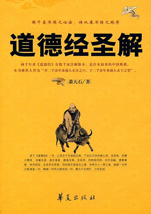 萧天石先生的著作我都很喜欢,这本道德经圣解是现代注本中极好的一个作品。本书简体版已经由华夏出版社於大陆发行,现在发的则是台湾繁体版,颇为难找;有兴趣的朋友请踊跃支持,收藏下载,宏扬中国文化!