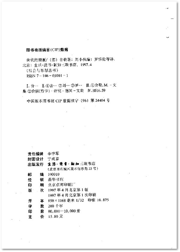 价值的颠覆 德 马克斯·舍勒 中译本 扫描版[PDF]