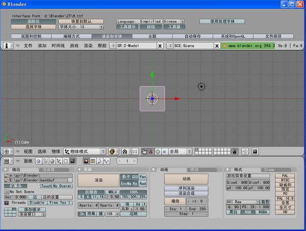 中文化方面:照着下面的截图设置即可,需要注意的是字体必须是中文ttf格式,如果觉得麻烦,这边已经提供了“黑体”字体,可以拷入Blender目录方便选取!字体文件请改为英文格式,因为目前运行中文格式的文件会出现乱码现象,请注意一下。