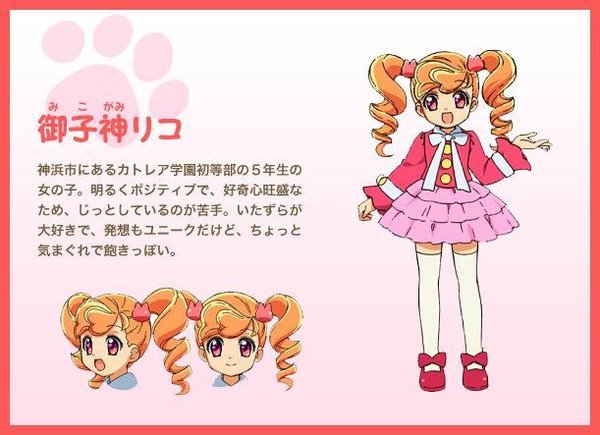 神滨市阿鲁卡多利学园初等部五年级少女,性格开朗好奇心盛旺!!不怎么能耐得住性子,留着双马尾的莉可天真活泼之余有着小女生独有的幻想感,元气满满!!