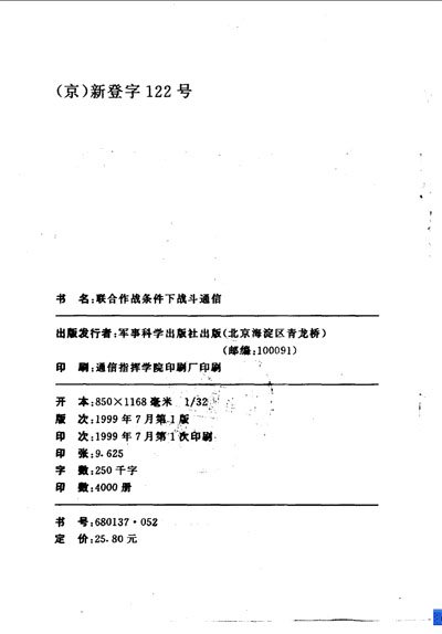 中文名: 联合作战条件下战斗通信