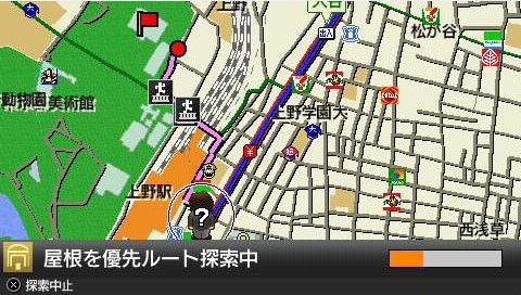 通过系统的Place Engine功能,使用者可以侦测出自己当前所在的位置,这时电脑会给出相对应的便捷行径路线。并且会在地图交叉口,丛林地带,十字路口等需注意路段给出扩大表示,提醒注意安全。