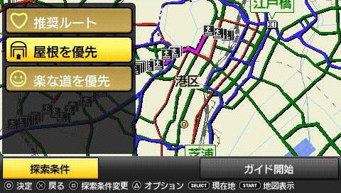 至于搜星和GPS定位方面,在《大家的卫星导航》中,使用者不但可以配合PSP GPS专用配件“PSP-290型”进行定位检索,这次还能使用PSP的无线LAN机能配合名为“Place Engine”的系统,检查出当前的位置。这点和手机在搜索不到GPS信号时,使用稳定的GPRS定位的道理是一样的。而且本作还与专业地图导航软件PetaMap联动,下载最新的路况信息。