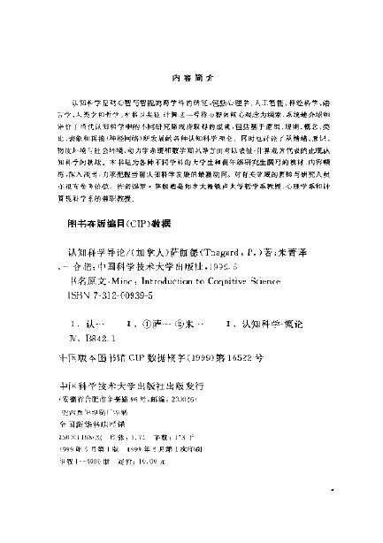保罗·萨伽德,现为加拿大滑铁卢大学哲学系教授,心理系和计算机科学系兼职教授。译者朱菁分别于1991年和1994年获中国科学技术大学工学学士(计算机科学技术)和理学硕士(科学技术哲学)学位,现为中国科学技术大学研究生院(北京)讲师。