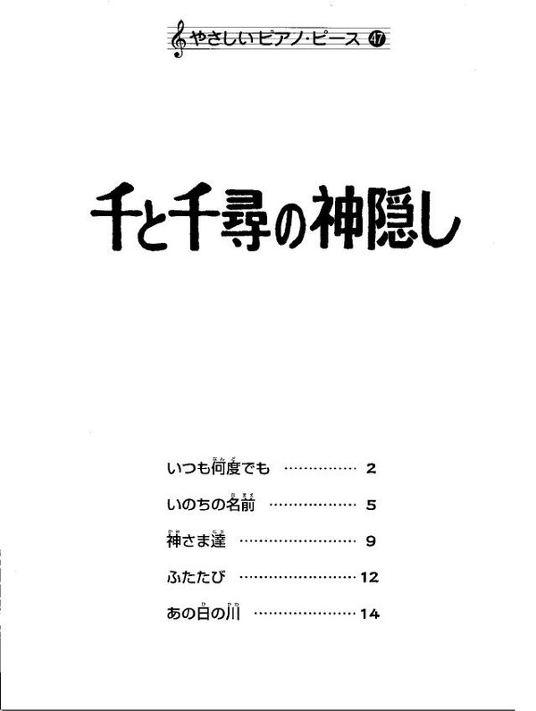 中文名: 千与千寻 宫崎骏 动漫音乐原版钢琴乐谱.PDF