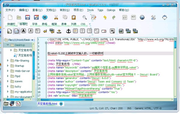 网页编辑器 Bluefish for veket 2.03中文版[安装包]