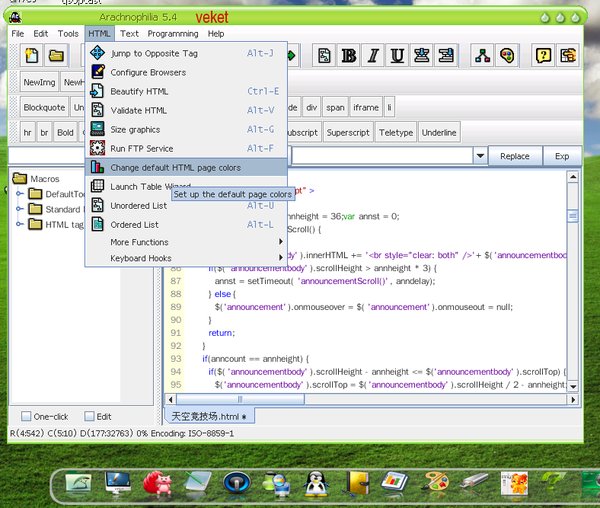 软件类型:网页编辑 软件性质:免费软件 操作系统:veket 应用平台:veket全系列 网站链接:http://bluefish.openoffice.nl/ bluefish:非常强大的网页编辑器,并且还在完善中。支持语法高亮、项目管理,而且附带了HTML和PHP的手册。 Bluefish是一个为有经验的网页设计者准备的GTK HTML编辑器。许多网站都已经完全采用它来制作网页,很多人认为它是veket下最好的HTML编辑器。它有非常优秀的创建向导(WIZARD FOR STARTUP),还有方便的表格、帧编辑器. Bluefish标榜其自身是“一款为熟练的Web设计员和程序员而设的编辑器”,但它的UI却很直观,任何初学者都很够很快上手,并在不断地积累中发现和掌握它的其它功能。如果你需要的是一款能够进行Web代码设计的文本编辑器,那么它一定会是一款很不错的软件。它给我的总体印象就是专业却不令人生畏,文字和图标结合的都很好。   Bluefish提供了很多常用的 HTML任务选项,例如字体、表格等等,当然还有链接,这个软件是用了一个比较不常见的“链接描述” (anchor)来表明可点击的链接。“链接描述”对话框甚至还提供了例如OnClick和OnMouseover这样的Java脚本事件功能。   它还有其它的对话框能够在PHP和SQL任务中来创建文本,就像很多Apache和C的选项那样,你还可以通过项目将文件进行分组,以便开发。搜索和替换功能也很不错,它还支持正则表达式,还可以对多种语言进行自定义的语法高亮。   再来说说它的一些不足。如果你需要一些文档帮助,那么你就需要单独打开一个说明文件,因为帮助并没有与这个应用程序结合到一起。它的使用说明内容是非常广泛的,如果你够耐心的话,你当然可以找到你想要的东西。例如,对于我来说,拼写检查没有让我很快地找到,但在我阅读了说明之后,我发现你必须安装一个独立的开源Aspell应用程序才能够进行拼写检查。   宏都是通过一个“自定义菜单”来操作的,在此,你可以创建自己的文本串、HTML打开和关闭标签或者是搜索和替换命令。文本串的创建包括了一些具有额外功能的对话框,它们在使用的时候都是非常简单的。   有些失望的是,在一个如此直观的界面中,我却没有找到为创建的宏而设的“编辑”定制菜单,但如果你参阅说明上的步骤,那么一切都很明了了。宏功能与其它的一些应用程序相比也许没有那么强大,例如,我在定制菜单中找不到如何使用其它的Bluefish命令,但在重复输入上,它们又都是很方便的。   最后,Bluefish并没有将自己定位为写作用途的应用程序,它也没有一些文本操作的命令,例如更改大小写字母或者是合并、拆分行。   这也就是说,如果你要找的是一款功能适度的基于文本的Web代码编辑应用程序,Bluefish无疑值得一试。 Arachnophilia 电驴资源 下面是用户共享的文件列表,安装电驴后,您可以点击这些文件名进行下载 Arachnophilia-5.42-veket.pet 详情 1.4MB 全选 1.4MB java软件,如果你的系统未集成就从下边下载: 电驴资源 下面是用户共享的文件列表,安装电驴后,您可以点击这些文件名进行下载 java-1.6.18-veket.pet 详情 35.7MB 全选 35.7MB