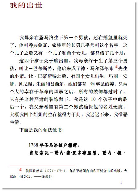 作者是法国历史上的重要人物,这里是他的回忆录的节选。有他的童年时代的回忆,有他对 1848 年革命的思考,有他与拿破仑的相识与反目的叙述,还有他在退出政坛后与退位法王的关系的描写。作者通过自己的生平,还着笔于复辟时期的政治、文化、社会的种种场面,描绘了一幅法国自大革命至 19 世纪上半叶的完整的社会图景。有一名人曾说,作者是用“最反常的方法把 18 世纪贵族阶级的怀疑主义与 19世纪贵族阶级的感伤主义结合在一起。 ”这个“反常”在于他把新旧制度的交替当成历史的必然,失去的必然是些值得怀念的东西。