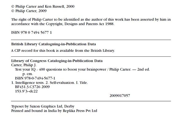 Test Your IQ contains IQ test questions written and compiled by IQ-test experts, complete with a guide to assessing individual performance. Working through the questions can help anyone develop powers of calculation and logical reasoning.