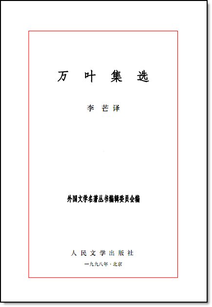 万叶集选:日本古代诗歌集/李芒选译注.-北京:人民文学出版社,1998. 10