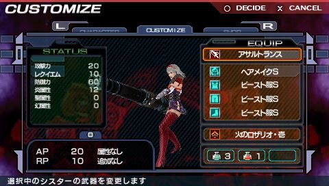 在本作中,玩家所操作的角色共有四名可供选择。这四名角色分别可以使用可高速攻击适合初学者使用的斗剑;牺牲动作与飞行距离而重视攻击力的战斧;通过爆炸力获得压倒性飞行距离,虽然攻击力略低,但却可以自由使用的爆发之枪;射程很长,攻击力也很高,但在接近战却很不利的机枪等四种武器;而依照武器不同,她们的战斗方式也将会各自有所差异。另外除了四种主要武器之外,玩家们还可以从远距离攻击、回复跟防护盾等三种类型装备中选择一种来当作副武器使用。