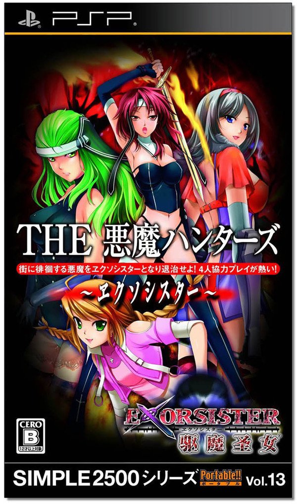 PSP新作《廉价2500系列携带版:Vol.13 The恶魔猎人驱魔圣女》(Simple 2500 Series Portable!! Vol. 13: The Akuma Hunters - Exorsister)描述从古代开始就在黑暗中活跃的恶魔狩猎部队与恶魔之间战斗的故事。而正是这支不问出身和经历的特殊部队,被命运所选上的四名少女们所组成的───“圣女部队”(EXO SISTER)一同和玩家进行一场驱魔大战。游戏中的每名角色都有各自的特点,玩家可以任选其中之一进行游戏。本作的目标也很简单,就是讨伐各地的恶魔,以此来拯救整个世界……