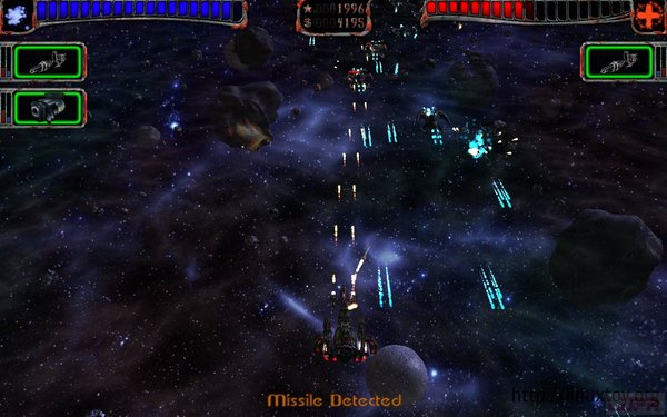 包括游戏菜单背景在内的全3D空间画面在效果上显得十分震撼,清晰的飞船船体和武器设计也让游戏的真实感进一步提高,绚丽的射击效果使得战争的氛围更加浓厚。