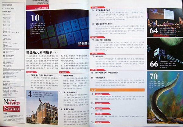 她以精美图片充分展现了科学的魅力,其壮丽与震撼令人过目难忘,进而将科学带进更多人的生活中去。《Newton-科学世界》的精致给人一种时尚、前卫的感觉,使科学阅读与享受精美的时尚设计完美融合,在赏心悦目之中更好地体现了让科学贴近生活、成为现代人一种时尚文化的理念。