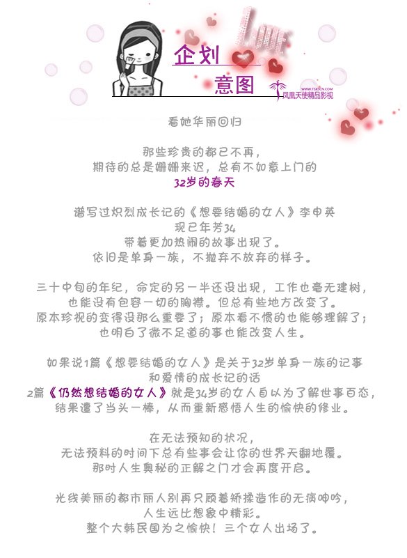 【剧情简介 】于2004年播出的《想结婚的女人》愉快讲述了32岁单身女记者新英、顺爱、胜利等三个朋友的事业和爱情,曾获得超高人气。2010年重新归来的《还想结婚的女人》是讲述34岁的三个单身女郎的事业、爱情和人生的故事
