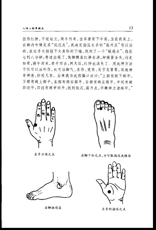 : 前言 在普及的基础上提高在提高的前提下普及 1、作者小传 2、人体×形平衡法的实用价值与药用价值 3、简易×形平衡法 一压灵 (1)×形平衡法治疗坐骨神经痛与坐骨神经炎 (2)×形平衡法治疗肩关节周围炎 (3)×形平衡法治疗胸伤 (4)×形平衡法治疗膝关节炎 (5)×形平衡法治疗踝伤 (6)×形平衡法治疗脚气病 (7)×形平衡法治疗产后宫缩痛与痛经病、子宫内膜脱出症等妇科痛症 (8)×形平衡法治疗颈椎病 (9)×形平衡法治疗臂与腿伤 (10)×形平衡法治疗双手双脚伤病 (11)×形平衡法治疗腰伤与腰椎病 (12)×形平衡法治疗脚后跟痛与裂口 (13)×形平衡法治疗子宫肌瘤及其手术后又复发症 (14)×形平衡法治疗甲亢或甲减 (15)人体×形简易安眠法 (16)人体×形简易治腹泻与便秘法 (17)人体×形法治疗前列腺病变 (18)人体×形平衡法治疗糖尿病 (19)×形平衡法治疗高血压 (20)×形平衡法压百会穴速治感冒 (21)×形平衡法治疗肺部出血病 (22)×形平衡法治疗哮喘病 (23)×形平衡法治疗心脏诸病 (24)×形平衡法治疗慢性肺炎、结核诸病 (25)×形平衡法治疗肝炎、肝硬化、肝肿大诸病 (26)×形平衡法治疗肾炎及肾功能诸病 (27)×形平衡法治疗消化病与肌无力病 (28)×形平衡法治疗前头痛 (29)×形平衡法治疗头顶痛 (30)×形平衡法治疗偏头痛 (31)×形平衡法治疗后头痛 (32)×形平衡法通治一般眼病 (33)×形平衡法治疗呃逆法 (34)×形平衡法治疗呕吐与胃胀 (35)×形平衡法治晕车、晕船、晕机 (36)×形平衡法治一般胃肠病 (37)×形平衡法治疗肠炎与消化不良 (38)×形平衡法治疗肠炎、疝气、便秘、消化不良、 (39)×形平衡法治疗咳嗽 (40)×形平衡法治一般感冒与感冒初起 (41)×形平衡法治疗头面、手脚部冻疮 (42)×形平衡法治疗烫伤 (43)×形平衡法治疗各类皮肤病 (44)×形平衡法治疗疮疖类肿痛 (45)×形平衡法治疗初起良性肿瘤 (46)×形平衡法治疗便秘 (47)×形平衡法治疗喉痛 (48)×形平衡法治疗夜盲症 (49)×形平衡法治疗肾炎水肿 (50)×形平衡法治疗疟疾 (51)×形平衡法治疗慢性气管炎 (52)×形平衡法治疗心慌绞痛 (53)×形平衡法治疗多汗发热 (54)×形平衡法治疗高热抽搐 (55)×形平衡法治疗小儿惊风 (56)×形平衡法治慢性低血压 (57)×形平衡法治疗癫狂高血压 (58)×形平衡法治疗腹泻 (59)×形平衡法治疗消化不良症 (60)×形平衡法治疗夜尿症 (61)×形平衡法治疗腰扭伤与腰痛 (62)×形平衡法治疗女子阴部无名疙瘩, 难以言状的顽固病 (63)×形平衡法治疗手指瘫痪 (64)×形平衡法治疗各类胃病 (65)×形平衡法治疗顽固慢性肠炎 (66)×形平衡法为10岁以下小儿退高热法 (67)×形平衡法为脾胃虚弱的儿童保健 (68)×形平衡法自疗坐骨神经痛妙法 (69)×形平衡法耳压治尿崩症 (70)×形平衡法手穴配耳穴治疗房颤、早搏 (71)×形平衡法取手穴治失眠法 (72)×形平衡法压脚穴治腰椎诸病 (73)×形平衡法治疗乳糜尿 (74)×形平衡法急救小儿休克昏迷 (75)×形平衡法治小儿脑损伤 (76)×形平衡法治疗精神分裂症 (77)×形平衡法治疗乳腺增生与肿瘤类 (78)×形平衡法治疗发热、失眠等症 (79)×形平衡法清热、止心痛 (80)×形平衡法治疗呕吐、失眠 (81)×形平衡法治疗喉病、咳嗽 (82)×形平衡法治疗泌尿、妇科病 (83)×形平衡法治疗月经不调与脾虚 (84)×形平衡法治疗小便不利、失禁 (85)×形平衡法治疗热病无汗、耳聋耳鸣 (86)×形平衡法治疗疮痂、目病 (87)×形平衡法治疗胸胁病、寒热病 (88)×形平衡法治疗便秘、瘫痪与痛症 (89)×形平衡法治疗胸腹病、泌尿生殖病 (90)×形平衡法治疗喉痹、音哑 (91)×形平衡法治疗糖尿病、脂肪肝与肿大 (92)×形平衡法治疗精神分裂症、失眠 (93)×形平衡法治疗肠道病、精神病 (94)×形平衡法治疗头面病、半身不遂 (95)×形平衡法治疗肠炎、痢疾 (96)×形平衡法治疗肠炎、半身不遂 (97)×形平衡法治疗胃炎、肠炎 (98)×形平衡法治疗三叉神经痛、各类出血症 (99)×形平衡法治疗发热、面神经麻痹 (100)×形平衡法治疗皮肤病、寒热病 (101)×形平衡法治疗腹胀、呕吐 (102)×形平衡法治疗口腔溃疡、癫痫 (103)×形平衡法治疗四肢痛及腰痛 (104)×形平衡法治疗发热、心痛 (105)×形平衡法治疗精神病与心疾 (106)×形平衡法治疗臂病、膝病 (107)×形平衡法治疗半身不遂、发热 (t08)×形平衡法治疗热病无汗、心脏病 (109)×形平衡法治疗癫痫及精神病 (110)×形平衡法治疗心脏病、精神病及癫痫 (111)×形平衡法治疗头痛头重、神经病 (112)×形平衡法治疗心脏及精神病 (113)×形平衡法治疗目黄头痛与肩周炎 (114)×形平衡法治疗臂肘与腰椎病 (115)×形平衡法治疗中风型瘫痪、甲状腺肿痛、皮肤病 (116)×形平衡法治疗半身不遂、皮肤病、风湿 (117)×形平衡法治疗肩周炎、膝关节炎 (118)×形平衡法治疗癫疾、瘫痪、头痛 手穴配宋法 (119)×形法手穴治疗腹胀 (120)×形法手穴治疗嗳气 (121)×形法手穴治呕吐 (122)×形法手穴治大便失禁 (123)×形法手穴治腹痛 (124)×形法手穴治不思饮食 (125)×形法手穴治腹泻 (126)×形法手穴治疗胃痛 (127)×形法手穴治痢疾 (128)×形法手穴治肠鸣 (129)×形法手穴治疗便秘 (130)×形法手穴治脾胃虚弱 (131)×形法手穴治疗脾脏肿大 (132)×形法手穴治疗胃炎 (133)×形法手穴治疗胃神经官能症 (134)×形法手穴治疗胃溃疡 (135)×形法手穴治疗十二指肠溃疡 (136)×形法手穴治疗胃痉挛 (137)×形法手穴治疗胃下垂 (138)×形法手穴治疗慢性胰腺炎 (139)×
