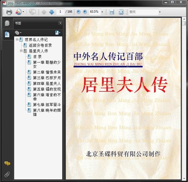 本传记主人公居里夫人是原子能时代的开创者之一,是世界第一位获得两次诺贝尔奖的科学家,并发现放射性元素——镭元素。本书作者是居里夫人的女儿,通过引用居里夫妇许多的信札和日记,详细叙述了居里夫人自强不息的一生,并着重描写居里夫妇的工作精神和处世态度。文字生动易读,该书已陆续译成了二十七种语言。