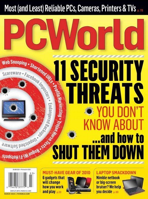 : PC World,月刊,为全世界第三大IT媒体IDG旗下的全球性IT专业杂志,全球54个国家和地区都有相应的PC WORLD杂志,其中美国PC WORLD,英国PC WORLD(PC ADVISOR)都是当地的第一IT杂志。在美国,PC World是最卖座的计算机月刊,超过620万读者。主要以产品为核心,与《PC Magazine》竞争。作为月刊能够取得如此佳绩,实属不易。每月发布排名前100位的PC相关的测试报告,每一期都有许多很有深度的报告和官方新闻故事、疑难解答和使用点滴、新的PC趋势、技术、internet等。PC WORLD在东南亚地区也有相当的影响,在新加坡、印度、中国、香港等东南亚地区共有13个PC WORLD.全球54家PC WORLD都有相应的评测实验室,54个实验室资源共享,信息共享,评测结果共享。 个人微博 http://t.sina.com.cn/lacostepolo 一月刊