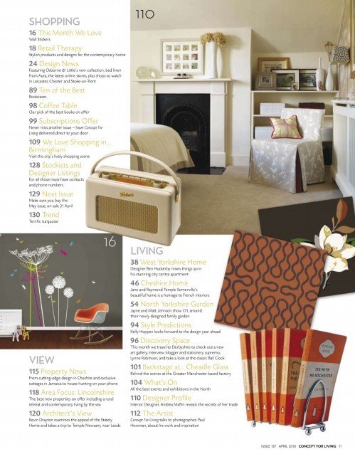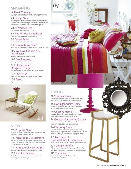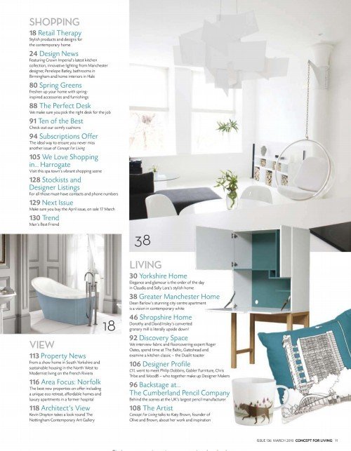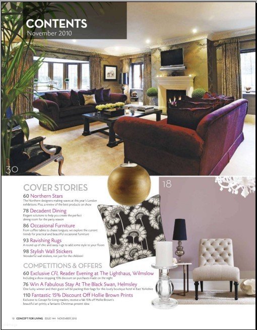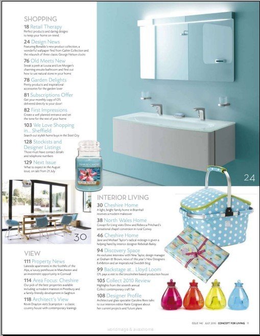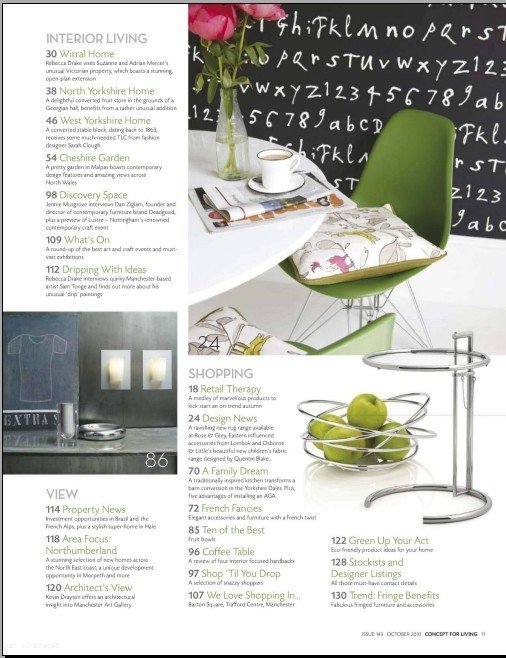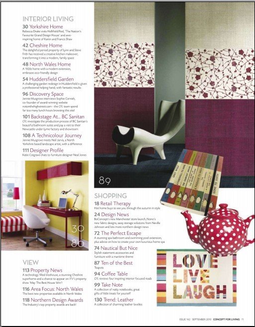 For over ten years Concept For Living magazine has sought out the most exciting interior design projects that the North has to offer, showcased a diverse selection of cutting-edge, design-led products and provided Northern design enthusiasts with a creative commentary on the interiors industry. Jam packed with readers' homes and gardens, product features, interviews, profiles and regional design news, Concept For Living is the must-buy design magazine for the north of the UK.