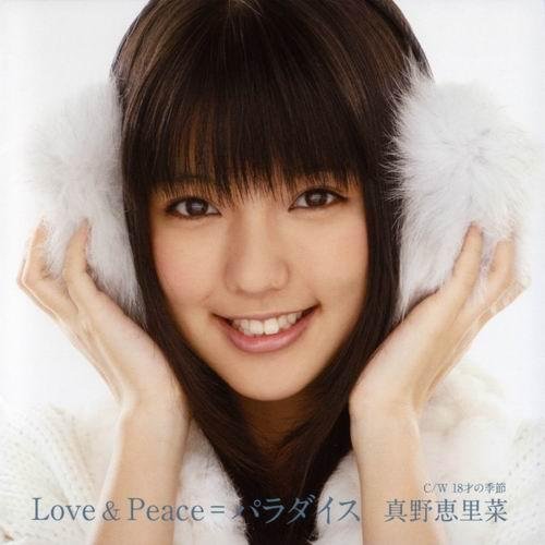 真野惠里菜 与 Hello Kitty 同台,可爱爆棚! 真野惠里菜的第五张单曲。这张单曲延续了之前的清新曲风。 A面曲"Love&Peace=Paradise"由三浦德子、たいせい创作词曲,大久保熏编曲,作为真野主演,S/mileage参演的Hello Kitty舞台剧“恋するHello Kitty”的同期单曲,在PV中,真野与Hello Kitty一齐上阵,以可爱的旋律谱写出Hello Kitty的童话世界。 B面曲“18岁的季节”以轻松明快的节奏,描述了18岁少女于生活中的微甜思绪。 本单曲在发行首周获得了Oricon周榜12名的不错成绩。