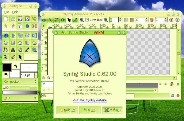 Synfig是个强大,工业级别的矢量2D动画软件包,其设计的初衷,是为了只用少量的人力和物力来生产故事片级别质量的动画。