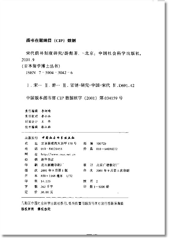 宋代荫补制度研究 游彪 扫描版[PDF]