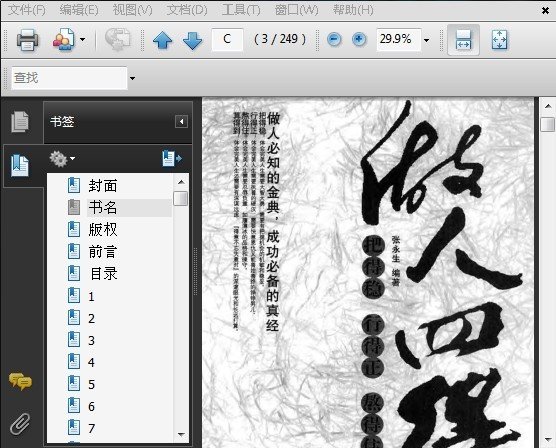 : 第一篇 把得稳 第一章 嘴上把得稳,生活没烦恼 1.把握好时机再说话 2.倾听也是一种语言 3.掌握让他人高兴的技巧 4.使用尊敬他人的称呼语 5.先说对方得意之事 6.反击要有理有节 7.慎于言而敏于行 8.明智地表示你的拒绝 9.让生活充满幽默的乐趣 10.善用“温柔一刀” 11.少说多听常点头 12.笑对人生 第二章 稳重是个宝,人人少不了 1.要知道自己能吃几两于饭 2.实干创未来 3.偶一为之:扯后腿,拆后台 4.柔弱胜刚强 5.有错则改,善之至善 6.得意之事少提,失态之举勿做 7.勿争一时一地之利 8.关键时刻要先发制人 9.综合素质强,人生局面好 10.以静制动,临危不乱 11.控制自己的情绪 第二篇 行得正 第三章 自家身板硬,说话理不亏 1.唾面不拭,气量如海 2.信守承诺,磊落做人 3.把喜怒哀乐放在口袋里 4.诚心见真意 5.敢于涮自己 6.将酸柠檬做成柠檬汁 7.学会宽恕 8.不要轻易许诺 9.勤作自我批评 第四章 对人对事“一个都不能少” 1.以众人之乐为乐 2.公私分明,以德服人 3.给他人面子 4.患难见真情 5.不要侵入他人的隐私世界 6.织好自己的关系网 7.道不同亦相为谋 8.容得下成功的妻子 9.尽量满足他人的虚荣心 第三篇 熬得住 第五章 梅花香自苦寒来 1.坚持就是胜利 2.机遇只偏爱有准备的人 3.把一天当做两天用 4.让磨难成为生活的调解剂 5.不要掉进侮辱者的陷阱 6.运气只是一时中彩 7.经验多智慧也长 8.毅力是成功的金钥匙 9.流自己的汗,吃自己的饭 第六章 忍字头上一把刀 1.先有忍,方有益 2.种瓜得瓜,种豆得豆 3.要会为自己鼓掌 4.勿将心事随便示人 5.勿拿鸡蛋碰石头 6.和小人保持距离 7.多请教少指点 8.夹紧尾巴做人 第四篇 算得到 第七章 未雨绸缪才能有备无患 1.牢记“防患于未然”之训 2.对他人表示你的关切 3.时刻保持清醒 4.适时调整坐标,把握人生机遇 5.抢时间,抓时间 6.勿为“马后炮” 7.明确自己的角色 8.多进行感情投资 9.分出人生的轻重缓急 第八章 人算不如天算,但不能不算 1.天不遂人愿,要学会顺其自然 2.积极应对暂时的退却 3.莫要锋芒毕露 4.谨防友情骤升温 5.“哥们义气”要不得 6.合作为取利,轻信要不得 7.勇敢地将“不”说出口 8.留手绝活 9.让“领导”放心,“群众”满意 10.勇敢面对意外的事实