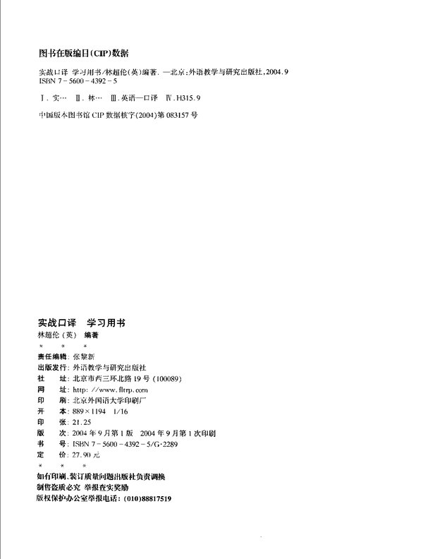 3. 结合中国实际,介绍有志于从事口译事业或业务所需的一些基本知识,为希望把自己培养、发展成为专业口译人才的有心人,提供一条可以参考的途径。