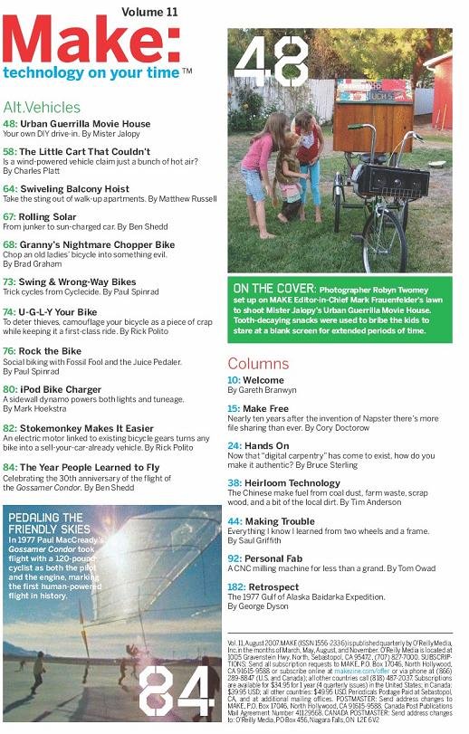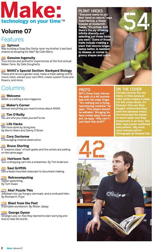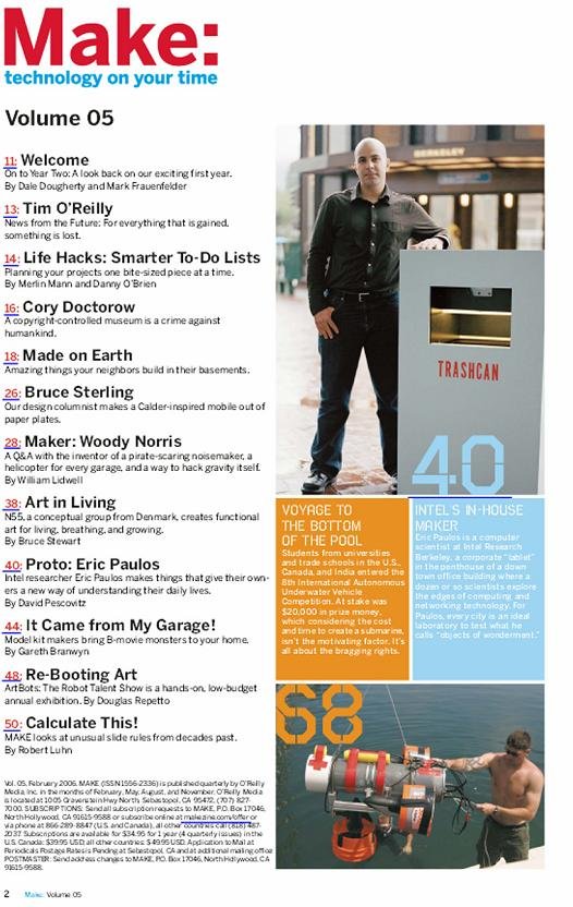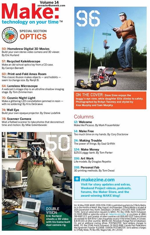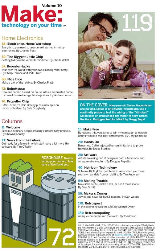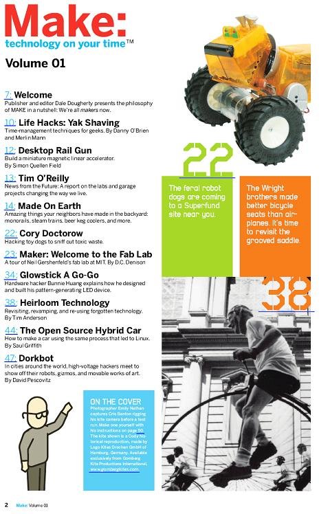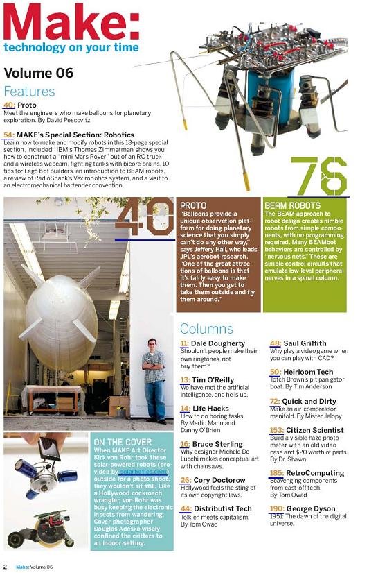 Make可以说是一本DIYer, geek必备的杂志,上面有很多各个方面充满创意和动手精神的DIY和制作项目,不得不感叹外国人在这方面的强大,虽然是英文,但有很多详细的制作图片和过程展示,理解并不困难。