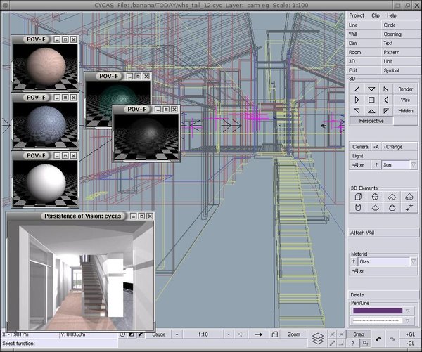 CYCAS是LINUX中的2D/3D建模工具,他除了具有2D/3D设计软件的大多数功能外,还有许多针对建筑方面的优秀特性,可以方便的开始一个工程的策划。