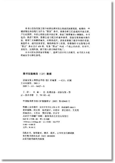 中文名: 设备安装工程禁忌手册