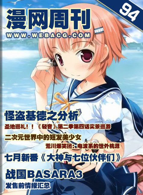 本期漫网周刊精彩看点:本期内容偏重于游戏多一些。cuisun为大家带来七月新番介绍,实果紫送上俏皮清爽的短发少女,晓梦带来荒川爆笑团的感受。风云的AIKA创誓记体验,以及明子的战国BASARA3特辑构成了本期的精彩要素