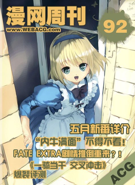 本期漫网周刊精彩看点:实果紫为大家带来的图包是感受二次元世界中的碧空少女系列,cuisun为大家带来爱人之心,世界之羁绊--Clannad,人与小镇的物语,明子则为您讲述CODE GEASS新作的相关情报,敬请欣赏